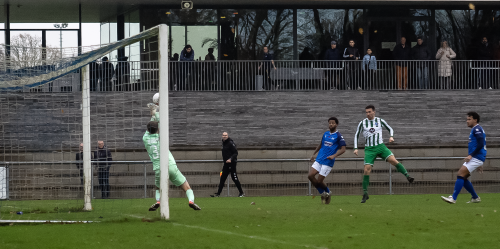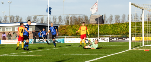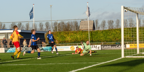Na een overtreding op de sterk spelende Jens Mastenbroek mocht Joeri Boshoven van zo’n 20 meter aanleggen voor een vrije trap. Zijn schot werd door keeper Tim Melissant uit de kruising geranseld.