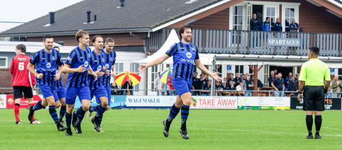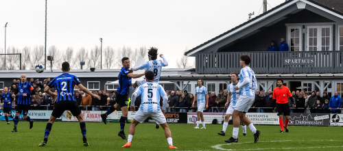In de extra tijd poeierde Pepijn van der Wulp nog een vrije trap in de Spartaanse muur.