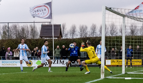 In de achtste(!) minuut van de extra tijd mocht de thuisclub een corner nemen. De mee naar voren gestormde keeper Martijn Niemantsverdriet kopte de bal bij de 2e paal in de handen van Tim Melissant.