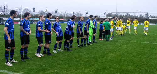 Met een gevoelstemperatuur van ruim beneden het vriespunt begon het duel op Sportpark Den Hogen Blok. Trainer Ben Mierop verraste met Jurian Hobbel hangend op links in de basisopstelling. De met rugklachten kampende Johan Vroegindeweij werd in de basis vervangen door Dennis Baars. Evenals tegen Heerjansdam begon Tymo van Nimwegen in de spits.