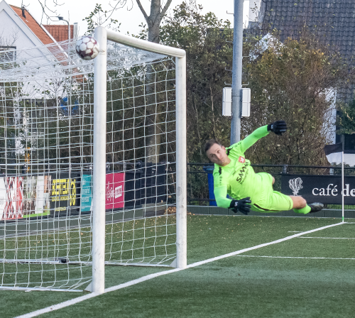 Bijna werd het voor rust nog mooier voor de thuisclub, maar Juul Peeman kreeg een hoekschop van Jeffrey van Veen bij de 2e paal net niet in het Dirkslandse doel.