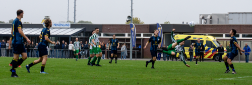Coen Kornet moest binnen het halve uur met een vermoedelijke hersenschudding van het veld. Tony Tieleman kwam voor hem binnen de lijnen. Daniek de Roon mocht niet mopperen over de kleur kaart bij een fikse overtreding op Gerben Prins op het middenveld.